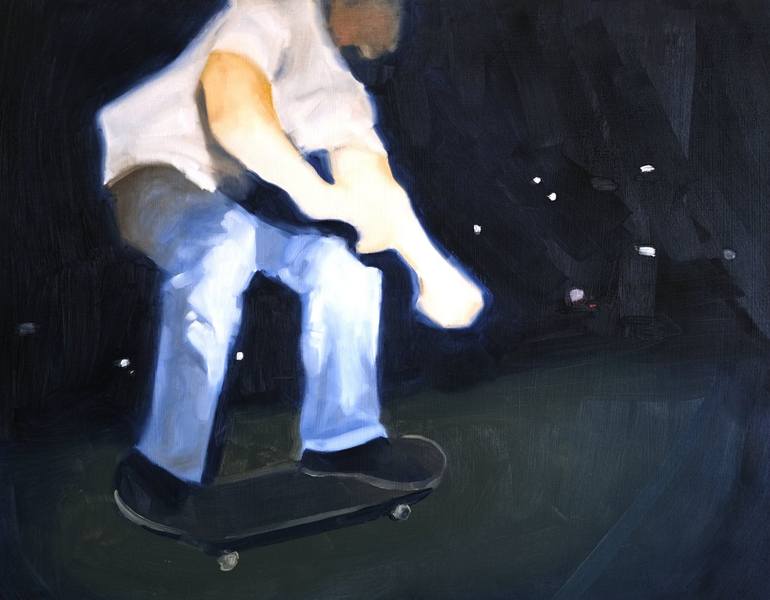 Based in New York, Matthew Casanovas is a painter whose work blends storytelling with a timeless, dreamlike quality. Drawing from folklore, sentimental memories, and contemporary life, his pieces often defy easy classification and invite reflection. Inspired by childhood passions like skateboarding, Matthew captures dynamic moments and stills that feel like paused frames from vintage camcorders. His paintings evoke a sense of yearning, encouraging viewers to explore cryptic narratives and connect them to personal histories. With a tone of naivety and space for exaggeration and interpretation, his art sparks shared experiences and emotional conversations, like gathering around a metaphorical campfire, inviting wonder, bewilderment, and connection.