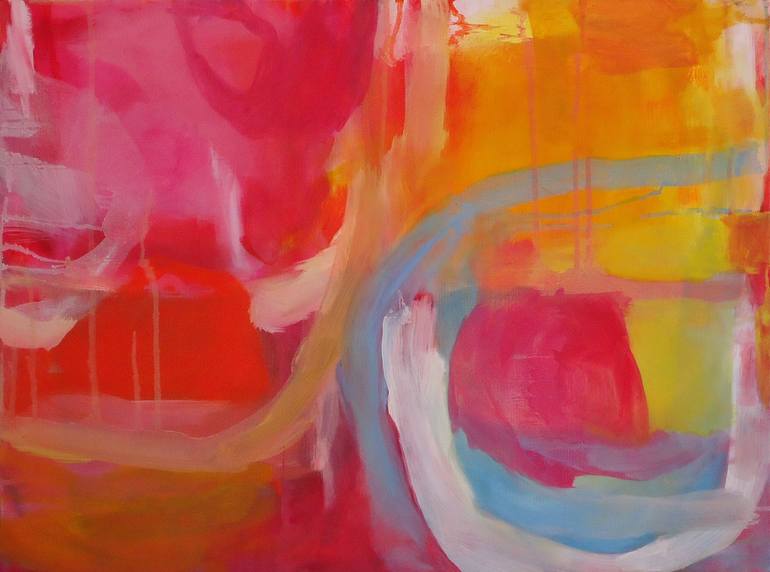 The sunny start of something new. Light and bright colours combine in this abstract oil on canvas painting.