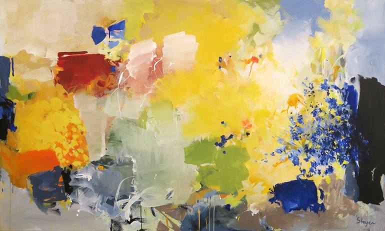 The sun always shines but it doesn't always reach us at full strength. This painting is powerful enough to brighten up a dull day. Some parts resemble a garden. Flowers are always nice to look at. It can make worries disappear.