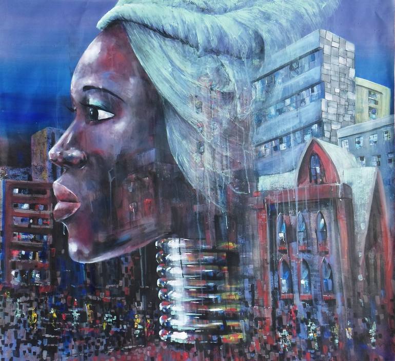Mbongeni's work is inspired by music and dance, he captures motion, mood and the rhythm to engage the viewer into the beauty of his musical work. He considers his artwork as visual music and expresses his feelings musically on piece of canvas singing his songs with a paintbrush. The body of his work is largely figures, evolving from abstract images to recognisable elements using vibrant colours, texture and 3D effects.