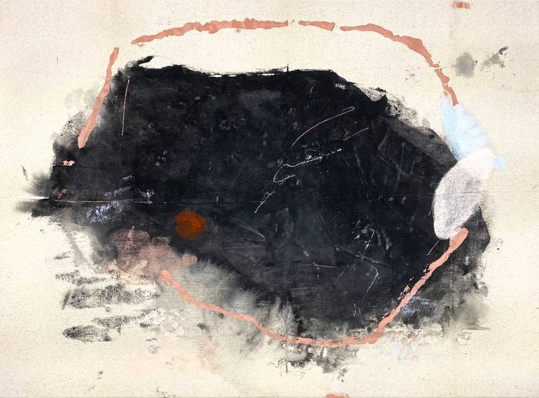 Black and pink stain painting on raw canvas in a Maple edge frame. “The true joy of a moonlit night is something we no longer understand. Only the men of old, when there were no lights, could understand the true joy of a moonlit night.” ― Yasunari Kawabata, Palm-of-the-Hand Stories