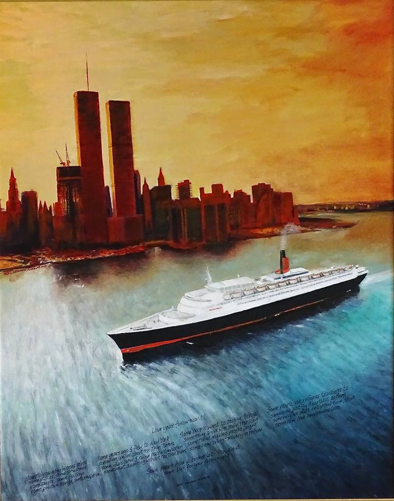 Prompted by fond memories of cruising past Manhatten before and after 9/11and a helicopter transfer from JFK, I painted this oil on canvas in 2019 from a unique reference I held for some 40 years. I hoped to capture warm memories of the past and reduce the awful memories of what transpired. Since ...