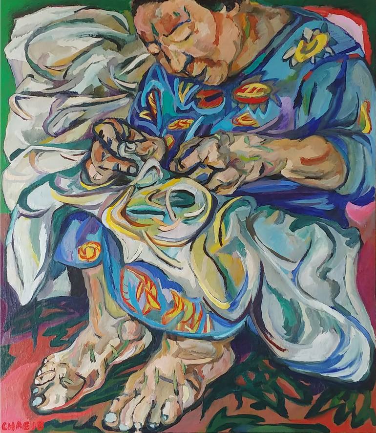 I enjoy painting my loving mother sewing. She passed away decades ago but I still remember her vividly. This painting expresses a woman who spent whole life for her family but without any consciousness of sacrifice.