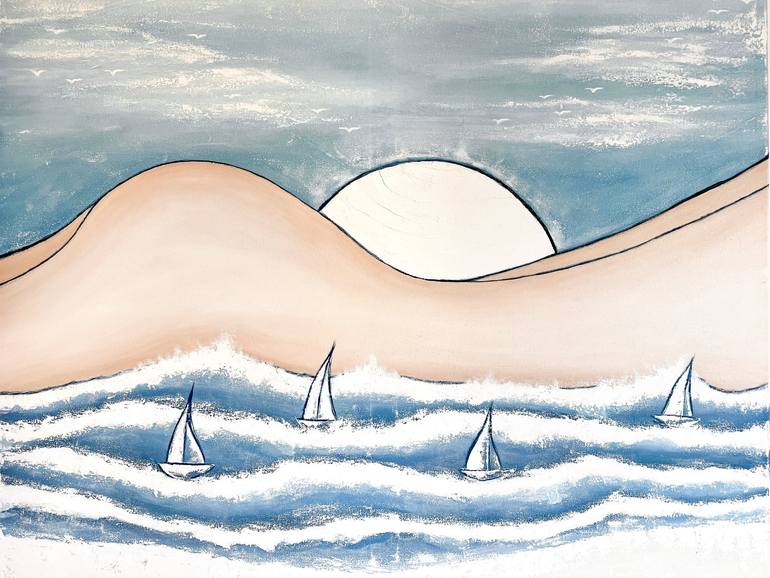 In this painting titled “The Woman and the Ocean’s Sunrise”, I sought to merge the beauty of the nude female body with the serenity of nature. The soft curves of the woman’s figure blend seamlessly with the sandy dunes, embodying femininity, sensuality, and elegance. Her silhouette, hidden yet capti...