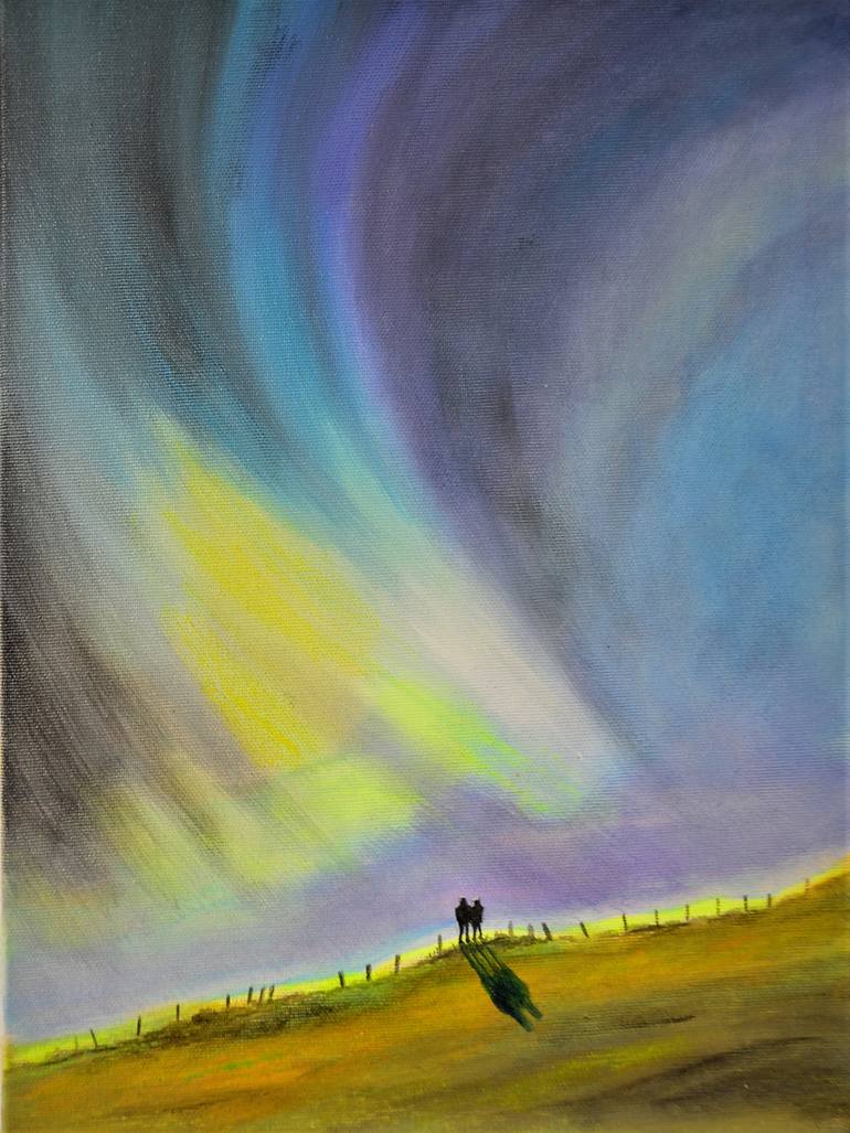 Tanja Vetter’s works show painting as alienation of a reality, where representational and abstract elements are imbued mutually with each other. Landscapes are her motif. Tanja Vetter’s countrysides of wood and mountainscapes, seascapes and staffage landscapes meet our eyes discomfortingly, melancholically and alienating. For, in spite of the closeness to the portrayed, unreal looking traits blend into the open spaces of the sceneries, make their way from tangible motif through its decomposition to the point of abstracted colour patches, warm and cold tinting colour gradients and surface structures. It is not the artist’s aim to depict nature, rather her landscape impressions shape themselves from painting; nature takes place in the process of painting. Her artistic repertoire ranges from expressive brushstrokes to dripped and blending oil paint; over and over the depth of space is sought after and penetrated by the autonomy of colour. In addition human figures in wide, sublime scenery; particularly the latest works include the figure, man into the colouristic landscape areas. These can be of quite symbolic nature and ask questions for the seemingly long gone desire and broken longing for the unity of man and nature. They let us discover and experience them again. Tanja Vetter gratuated in 2002 from the Freie Kunstakademie Mannheim, Germany. Her work has taken many turns in recent years: from abstract informal art to realistic painting – often broken by ironic elements and exploring its means and possibilities by itself.