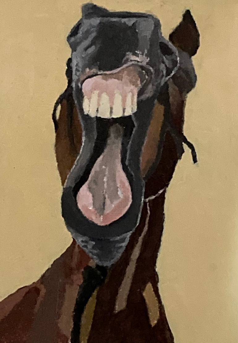 This is an illustration of my horse, Buzz, yawning. Instead of painting the beauty of the horse,I like to show their humorous and personable side.