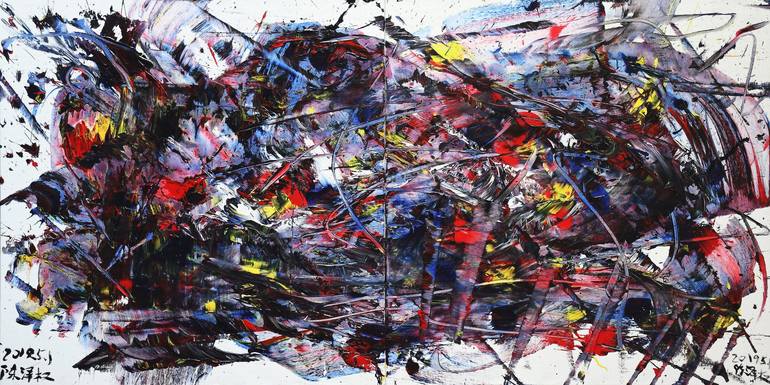 I am LIN Shenglian, here I would like to introduce my son, a young artist, CHEN Zequan. CHEN Zequan is valued for his large "hitting art". He has not drawn any sketches for his creation, and only by a series of improvised intuitive actions to complete the paintings, sometimes it feels more like an athletic sport or a competition. Color evolved and rhythmic changed in the action of repeatedly hitting the canvas, forcing the viewer's eyes to constantly search for and experience the speed, explosion, and infinite inner expansion in the paintings that brought by the actions of hitting, scraping, and the patchy color blocks. His painting is no longer an aesthetic design, but a carrier of human movement dominated by his heart; Painting is no longer to express emotion through image or form, but becomes a direct record of the artist's emotion. His unique style has the characteristics of freedom, unrestrained, ignoring the objective and space delimitation, reflecting the mentality and actions of young people in China's reform and opening up to break away from tradition and pursue freedom. Zequan's creation comes from his love for color and constant experimentation, and also are deeply influenced by campus life, nature, science, and music. He loves music and studies violin and percussion. These diverse sources of creativity make his artistic works full of rich colors, vivid rhythms, strong actions, explosive brushstrokes, and unique artistic language to interpret his emotions, perceptions, and understanding of the present. The Jumping brushstrokes on the painting convey speed and strength. This is a grand meeting of color blocks and lines, a burst of emotions deep in the artist's soul. They interact, collide, and blend with colors to create an empathetic visual rhythm, as if enjoying an intense symphony or dance. CHEN Zequan's paintings are a process of seeking pleasure, hugely emotional expression, and venting in behavioral movements. From the experiment of the combination, infiltration, and flow of water and color, to the unexpected patterns formed by the self-drying of the painting, he gained infinite joy, and then to the passionate expression and hitting of color, his emotions poured out. When viewers see the visual effect of painting which have been hit, they can even personally feel the power and speed of the hitting.