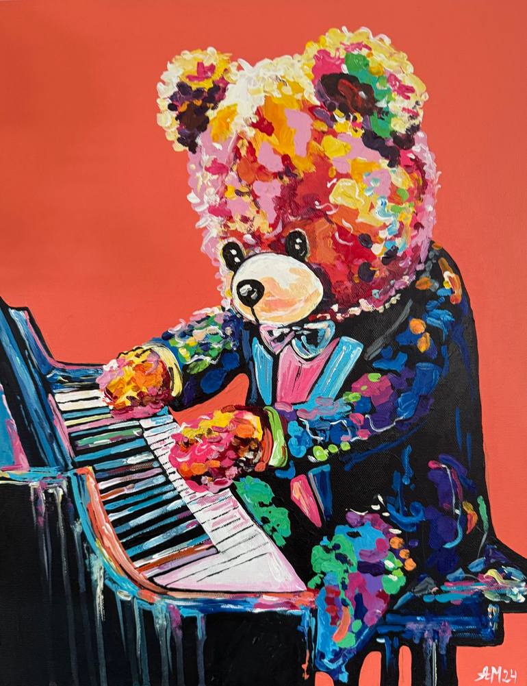The Young Maestro," part of the TOYS collection, is a joyful invitation to reconnect with your inner child. Picture a charming teddy bear, dressed to impress, passionately playing a grand piano as if the whole world is its audience. With vibrant colors and playful energy, this piece reminds us of th...