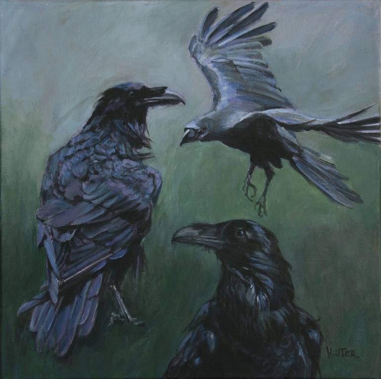 I took part in a project initiated by the Greek private Museum Copelouzos. This project is called "35 x 35" project. I've been selected, and my artwork is now part of the museum's permanent collection. The subject matter was unrestricted, so I imagined this encounter between ravens, intriguing and i...
