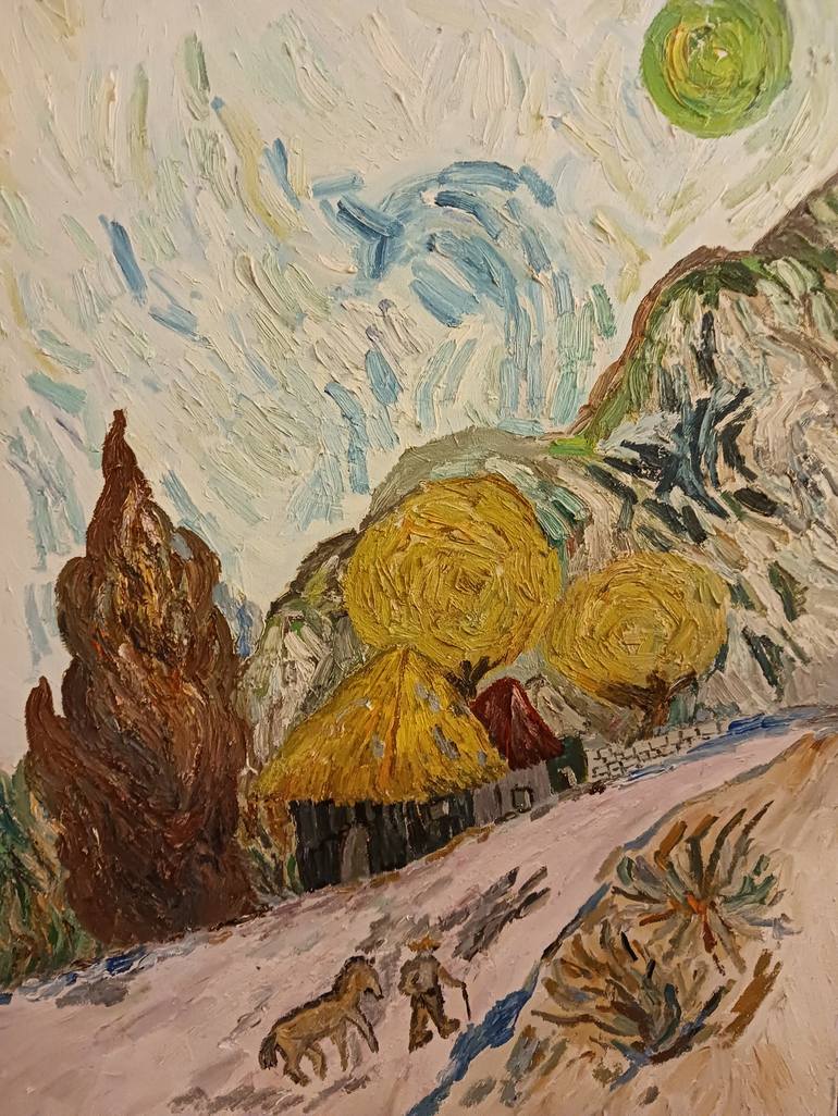 Van Gogh inspired the painting. The title is from the song, which we all know from the 70s. When artwork and title, combined, to create a new essence. Isn't that wonderful? And your perception, adds to the new, grander and larger essence, which is stored outside of this immediate reality. Which...