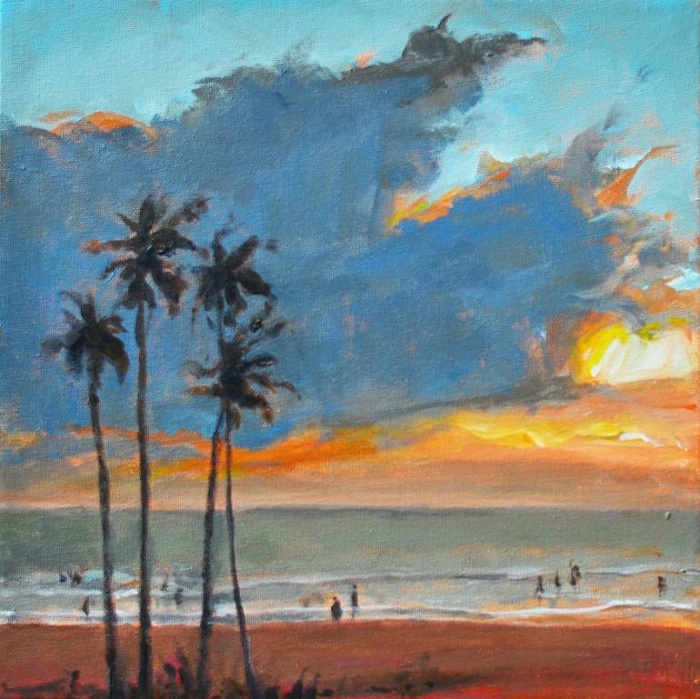 In this series of landscape paintings, I have emphasized the unsung colors of dusk and dawn sky. The medium used here is acrylic paints & the surface has mild texture of brush and knife strokes. This painting is on a stretched canvas