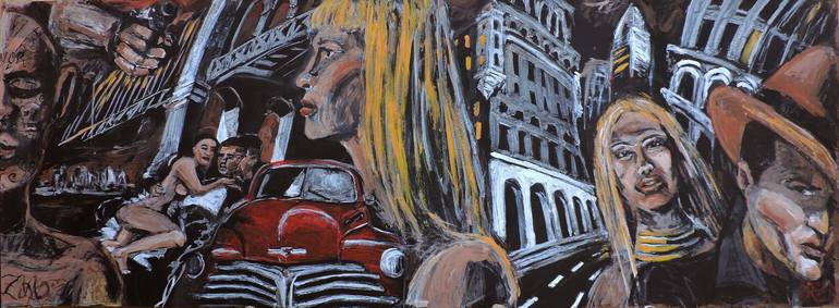 Es parte de una serie sobre ciudades. en este cuadro me inspiré en las historias del cine negro norteamericano. Algunos espectadores recordaron la película "Chinatown" cuando lo vieron. Espero que los espectadores dejen volar su imaginación y narren su propia historia. Usé el expresionismo porque s...