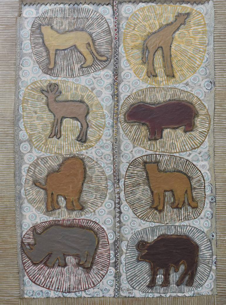 big five animals, endanger animals. acrylic on canvas