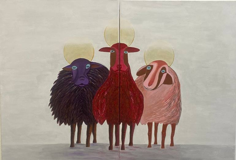 The work was inspired by the Spanish sentence: Las ovejas negras, which represent the worst of every family. I have played with the adjective black in the title and painting them colourfully to have more irony, and to emphasise this idea I have added the angel aura.