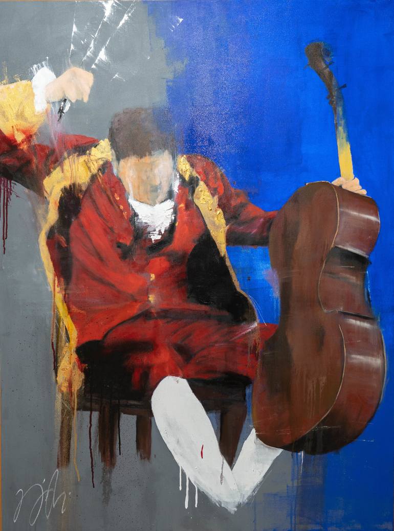 Title of artwork "The cellist" mixed media with spray paint painted on canvas size F60 (1303mm x 970mm) unique original Floater wood open back frame (I will frame the work) Ready to hang Information Color Project Art management