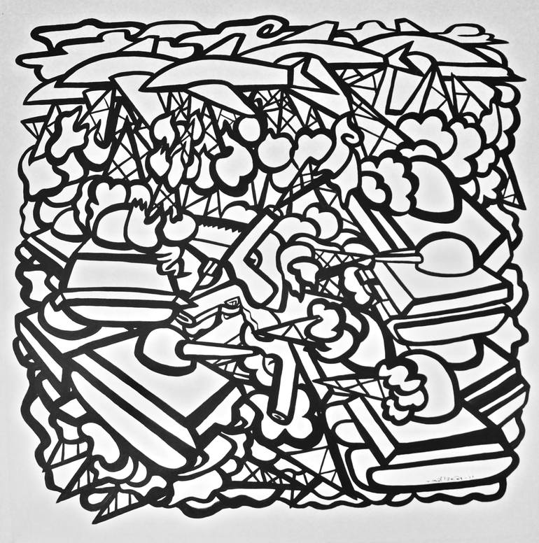 This painting is inspired by world's happenings and the fact that conflict is still very present in many countries. The artist, ironically criticize this behaviour putting ice cream in a war scene, with the hope for the war to melt away. The title is a witty re-take of "the Cold War".