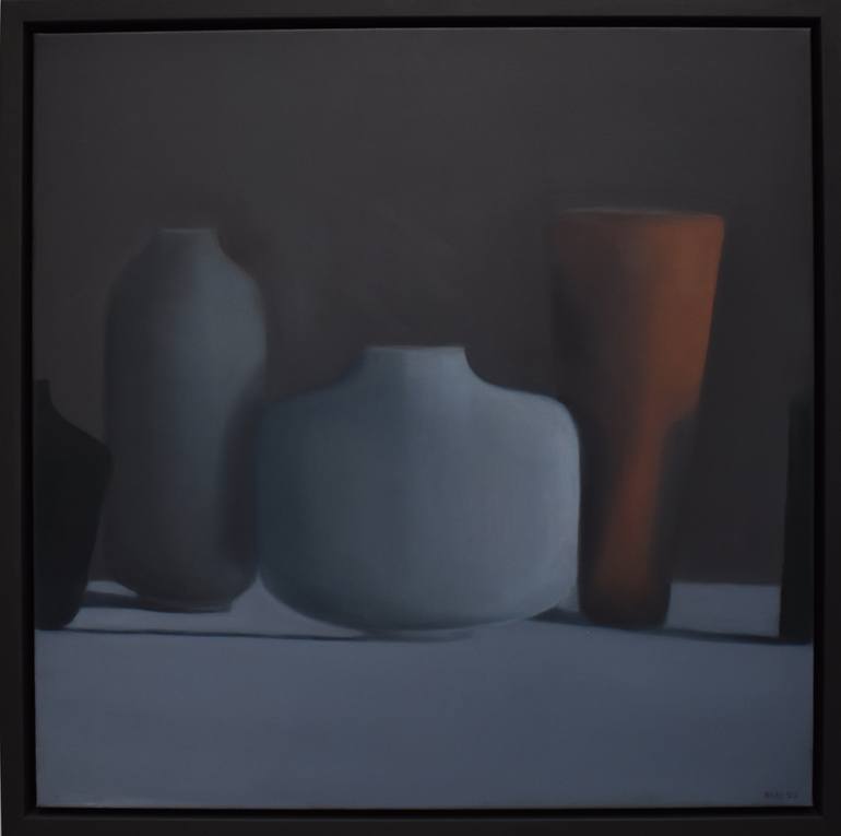 Pascale’s passion for painting started in Paris where she discovered her passion for 17th-century art, leading her to join evenings' classes where she specialised in different oil painting techniques such as glaze. Having moved to London in 1998, she started her career as an Interior Designer in 2004 alongside painting from home as a hobby. Pascale settled into the Wimbledon Art Studio in August 2018 with a desire to pursue her passion further. Influenced by Georgio Morandi, Mark Rothko, Hammershoi and Lawrence Carroll, Pascale is fascinated by shapes, volumes and light. In 2019 she has chosen to focus her skills on painting domestic items which we usually do not pay attention to, challenging herself to catch viewers' attention by making them appear as beautifully intriguing sculptured items. Pascale particularly enjoys working with restrictive palettes of colours as monochromes reflect her need for peace and simplicity. Playing with lights and shadows brings a powerful ambiance to her artworks, set still in time and yet provoking viewers to wonder about the bigger picture each piece might be part of in the artists' mind. As G. Morandi once said, " One can travel the world and see nothing. To achieve understanding it is necessary not to see many things, but to look hard at what you do see'. This is what drives Pascale in her work.