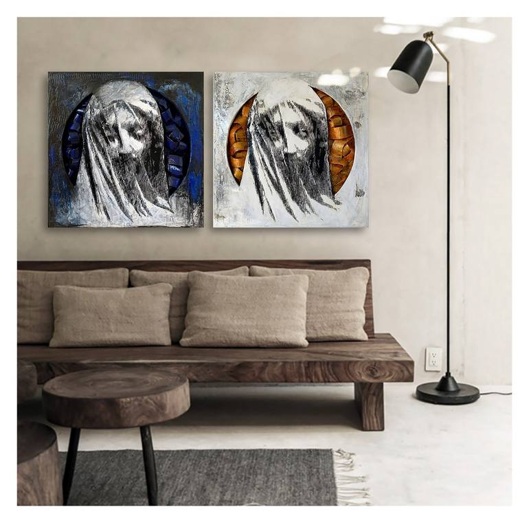 The day and the night. This diptych is one of my favourite. About the technique: I intersect the techniques and possibilities of painting, sculpture, and printmaking art by bringing layers together with paint, surface, height, depth, and various materials. While reinterpreting classical masterpiec...