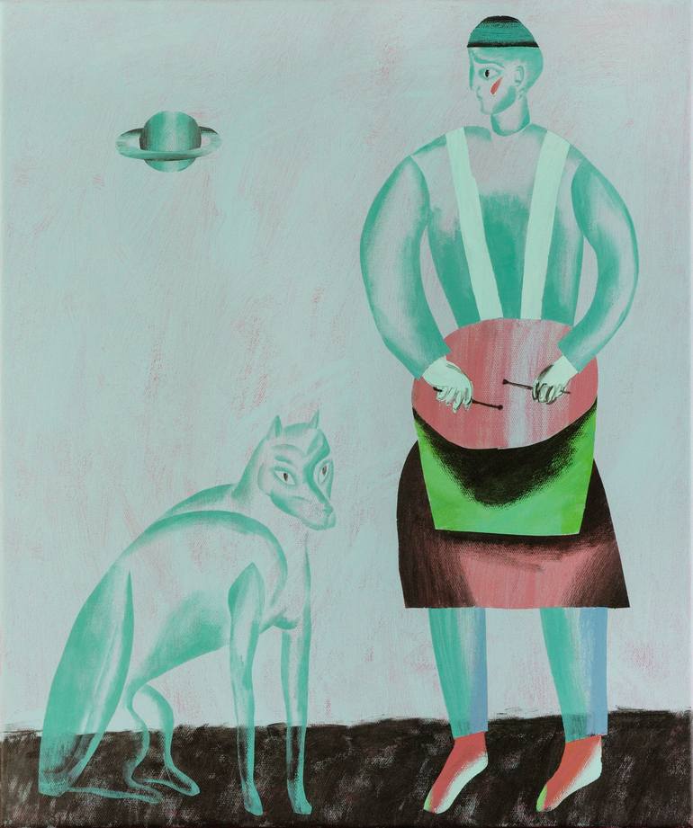 I often try to make my paintings as visual hokku. I love their simplicity, brevity, depth and often irony. For fun i asked chat GPT to wright four hokku about this painting. Here they are: Saturn drums softly, a lone dog howls to the beat— stars keep time with tails. Rings hum in the sky, drumm...