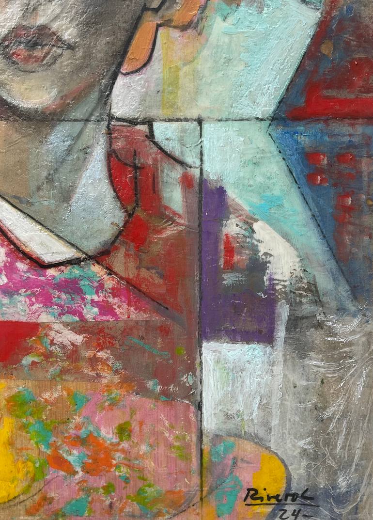 ENGLISH Painting made with collage and drawing on wood, then varnished with epoxy resin, giving it a smooth crystal-like finish. It is inspired by the idea of uncertainty, subtly alluding to the arrival of spring — that fragile moment when things begin to change, bloom, or dissolve. The irregulariti...
