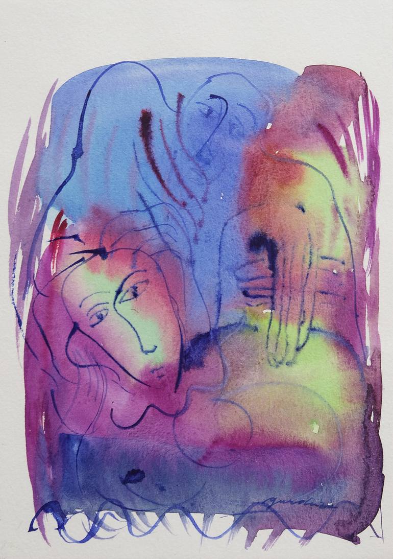 The strong line contrasts against the large expanses of colors underlies self-identity. Furthermore, the space represents the possibilities for color expending, delimitated with concrete soft lines that create shapes, humans, eyes, embraces.