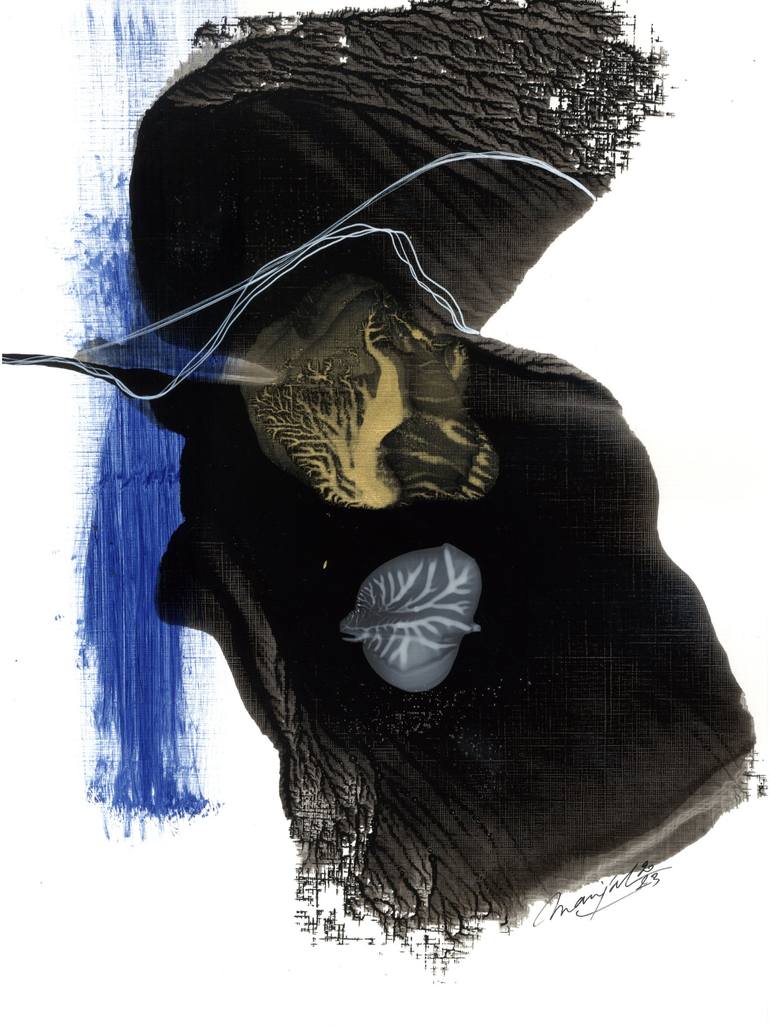 The work of Marijah Bac Cam questions the Memory of the Living through the Languages of the Feminine Principle (creative principle of Nature) by means of drawing, painting and increasingly photography and video. What does this chaos of fullness and emptiness mean, enhanced with dots, curves, golden wefts and gestural writing? In the artist's painting we perceive a Living being organized before our eyes, starting with the diffusion of black ink. These dark masses mingle with another color to symbolize the different elements, air, water, fire, earth, ether. Suddenly an organic mesh forms on the surface, connected to the misty depth. It is a question of reversal, as if to lead our gaze towards an inner world, that of the organs, tissues, vessels of an unrepresented body. These drawings express more sensibly an intuitive word in a vegetal and vibratory atmosphere that are our buried memories. They are the representation of the original past in a form that is no longer mental but metaphorical. Graffiti sometimes float here and there, like a palimpsest as if to inscribe a forgotten verbal dimension and question the meaning of forms. Her work evokes images that are almost figurative but difficult to identify. It's a question of everyone's point of view, seen from the sky or underwater, in macro or even in a wide shot. This collective memory seems to define and tell terrestrial and extra-terrestrial landscapes. Does Nature have a universal language that hides in our memory?