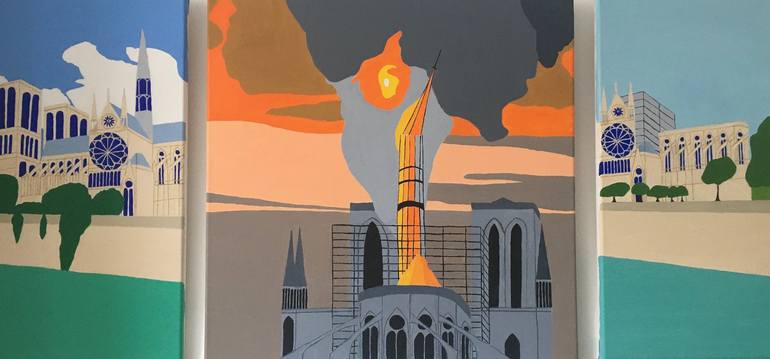 Notre-Dame of Paris has burned the 15 april 2019. Like a lot of Parisians, I was very shocked at the moment, because it's the most important monument of Paris and I live not very far to it. It was very important for me to paint this historical moment. My work is a triptych : before the fire, in the ...