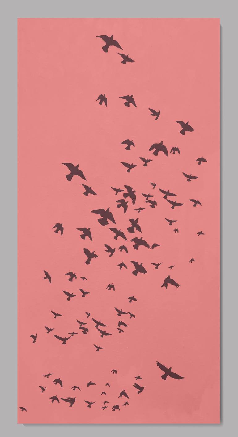 This series of paintings is inspired by the dynamics of flight and interaction of birds, their lightness and freedom. Each bird is generalized to a silhouette and organically creates a common composition. The placement of the birds is not symmetrical, they fill the space unevenly, which gives a se...