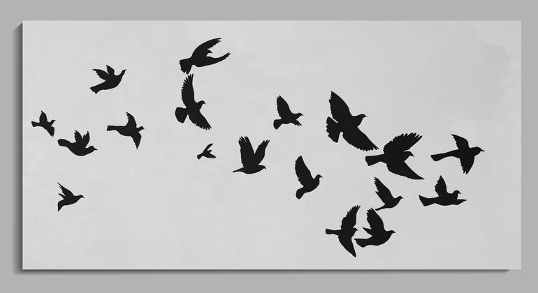This series of paintings is inspired by the dynamics of flight and interaction of birds, their lightness and freedom. Each bird is generalized to a silhouette and organically creates a common composition. The placement of the birds is not symmetrical, they fill the space unevenly, which gives a se...
