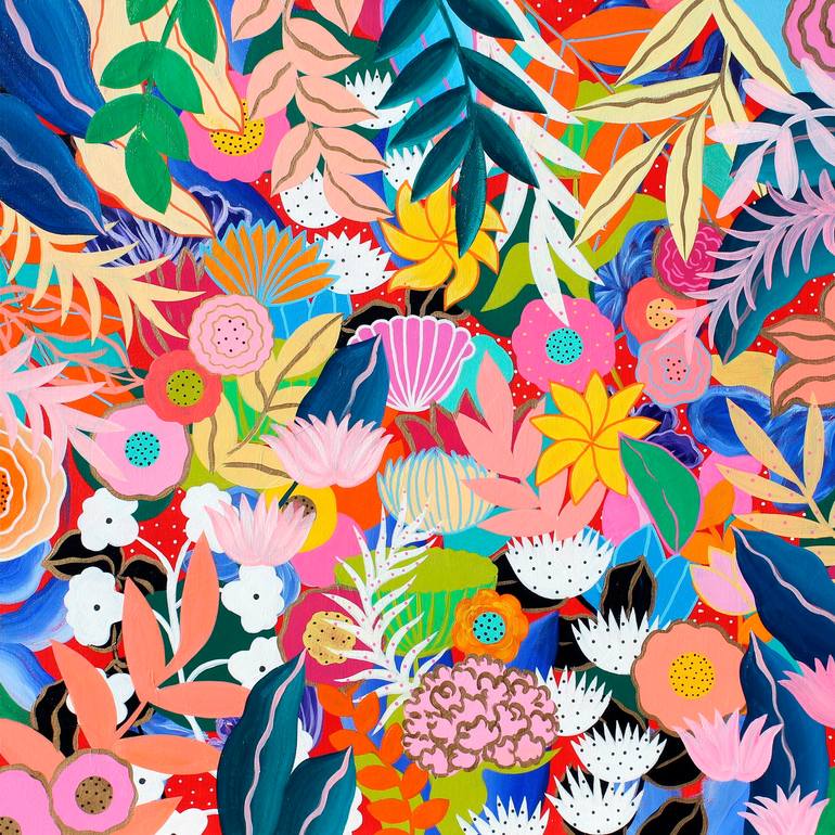 DETAILS: * Painting name: "The garden of happiness V" * Artist: Martina Boycheva * Painting signed and dated with certificate of authenticity * Size: 80x80cm/32x32in * Technique, material: Professional acrylic paint, gold paint, UV protected varnish on canvas NOTE: * The frame in the photo is for...