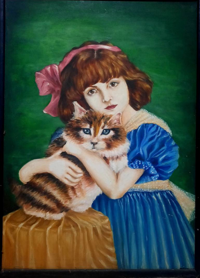 One of my works that looks deeply at everyone who looks at it from any direction,The girl and the cat painting, painted years ago by me, I am a painter who loves art and adore details, especially showing the look and the depth of looks in my paintings is my signature, so I present to you this painti...
