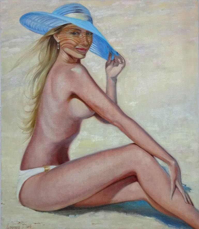 The beauty of the female body has always been an inspiration for artists. This canvas was created with a girl friend of mine. Very good angle, light. I also like the color that conveys a sultry day. It turned out to be a beautiful realistic work.