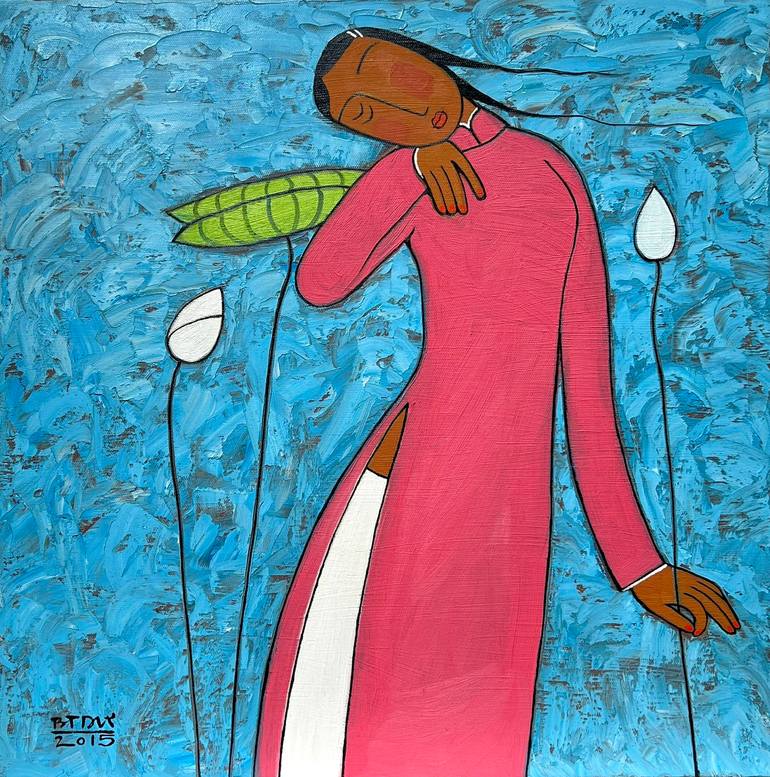 Bui Trong Du was born in 1976 in Hai Phong, he currently lives and works in Hanoi. During his studies and work, he traveled to many places in Northern Vietnam, falling in love with his homeland's landscape and imbued with traditional cultural values. Most of his artworks have an Oriental figurative style, sometimes mixed with a bit of impressionism or expressionism. With a simplified and stylized form of expression, the soft penmanship echoes Vietnamese folk paintings. Artworks such as summer lotus flowers, young women with lotuses, street corners, flower vases, and childhood memories such as flocks of birds, fishes, frogs, dragonflies... show the melody of beautiful, innocent life. Creating quality through mastering lacquer material is an important highlight in the work, it contrasts with the simplified form, this combination has created the artist's mark in the context of Vietnamese painting during the Integration.