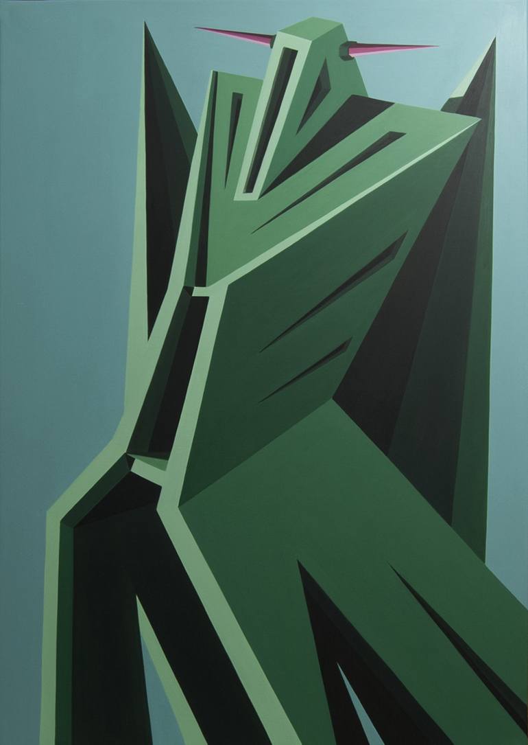 - Title: The green saviour - Year: 2021 - Size: 100 x 70 cm - Technique: Acrylic painting on canvas - Style: Abstract Geometric - Original and unique painting, there are no other copies. - Authenticity certificate with artist's signature. - Painting is signed and dated on the back. - I use high qu...