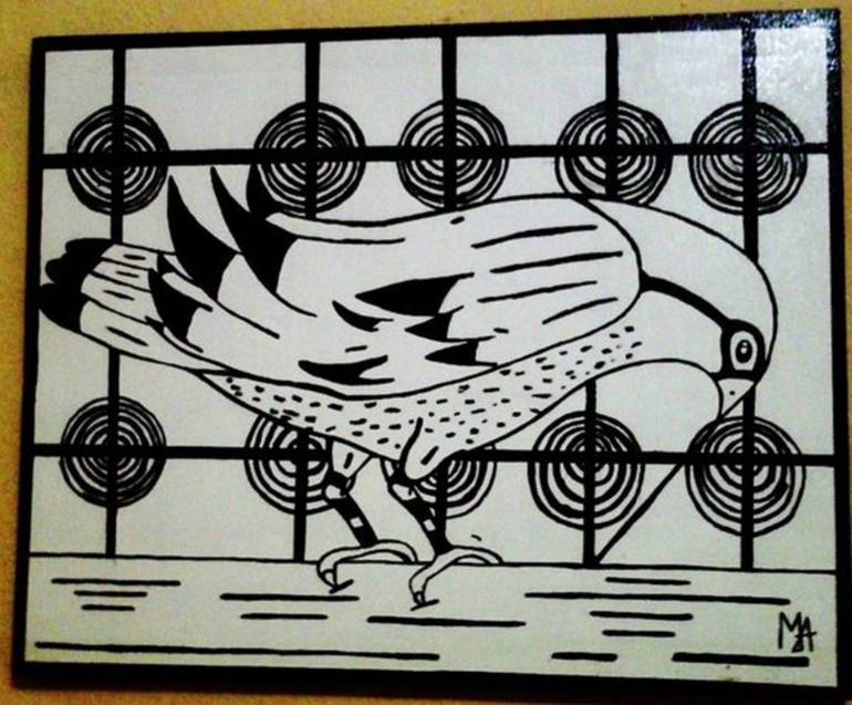 The hawk in the cage -Acrylic on canvas -Size 40 height - 50 width -2013 year
