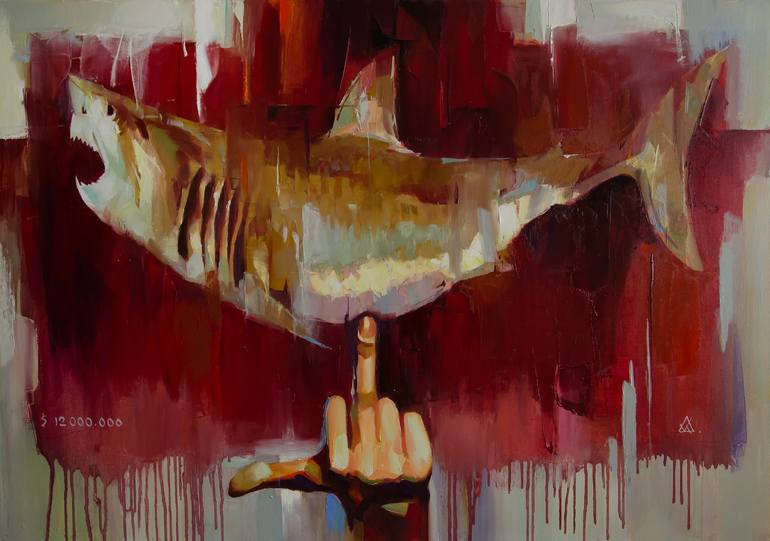 “Laughing Exhibit” — oil on canvas This work is an ironic requiem to contemporary art. It laughs at how art sometimes becomes an object that must be “explained” instead of simply experienced. Bold expressionist brushstrokes, pop-art influence, and a dominant red palette create a visually striking, ...