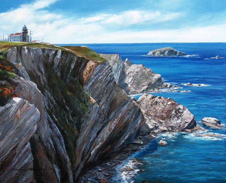 This work represents the cliff of "Cabo de Peñas" located in Asturias in northern Spain. We observe the immensity of the Cantabrian Sea from the vertiginous cliff.