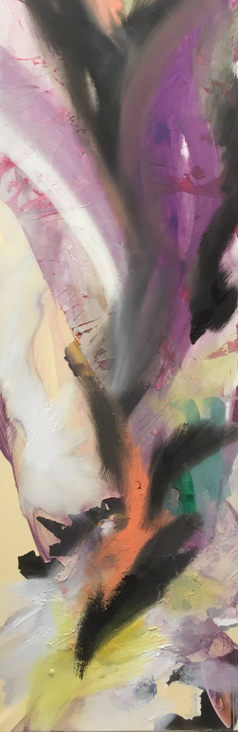 My niece paints. Then she says that she doesn't like what she does. So she gives it to me. I fix it. This painting tells just such a story. In fact, there is a hole. She did it. I left it there. The hole with the painting around it.