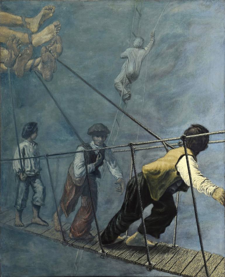 The psychopomps at work. oil on canvas. cm 144 x 117. 2016. This painting it's part of cycle " Work" in progress. It's ispirate the mitic Psychopomps that pick up the souls for bring in the paradise. The work is carried out by mixing the raw pigments with linseed oil without using industrial colored...