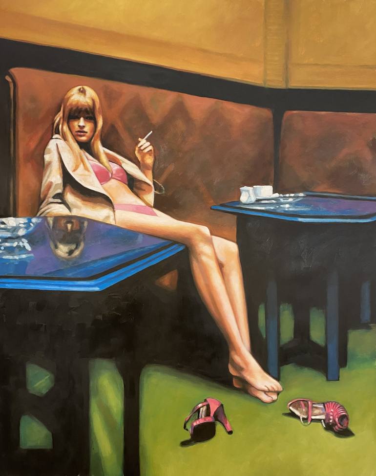 I live in Majorca, Spain, where i paint simple iconic images from the net or my life, like big oil sketches. I have been painting professionally for over thirty years. Sort of a child of Hopper, figurative and Pop art, i love colors, provocation and big canvas.