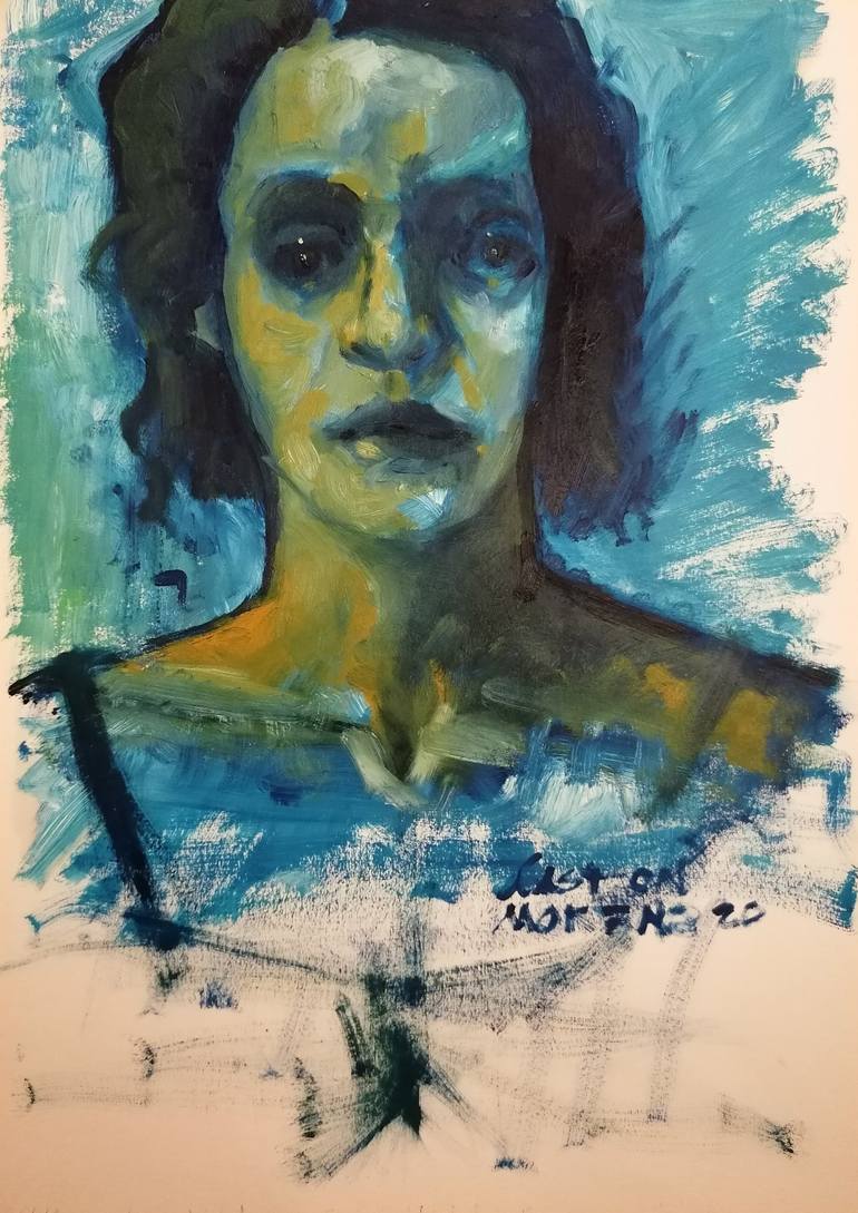pintura al oleo sobre papel fabriano sin barniz de proteccion. rostro de mujer con la mirada triste