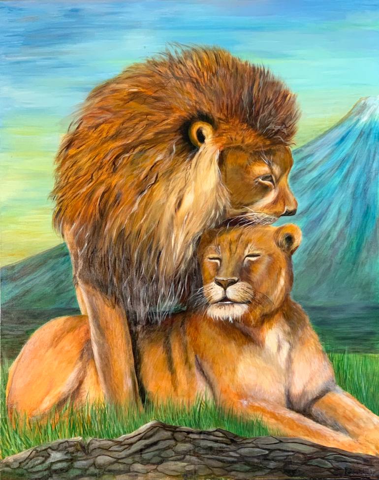 Each piece of art has its own story behind. It actually wasn't me who gave a name to this artwork. I remember me being looking for a topic for a long time. I wanted to draw a love story of a young lion and an adult lioness, to convey their feelings and emotions. This artwork reminds me of sweet, te...
