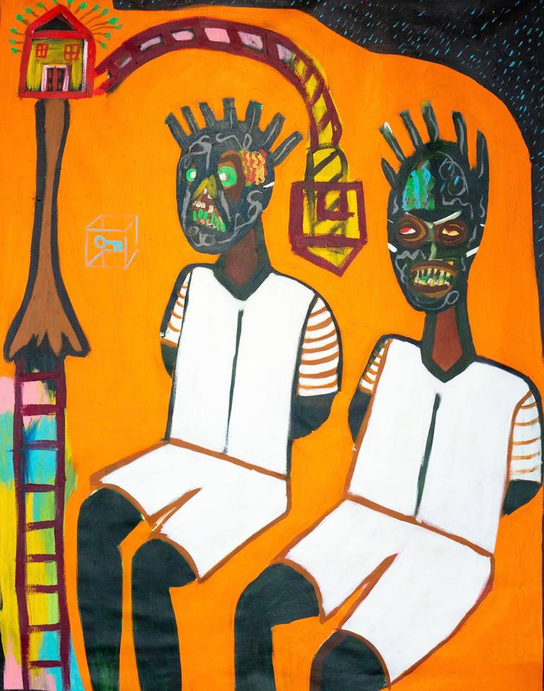 This work is inspired by my life. I hope the views are drawn in by the bold colours and expressions on the characters faces. I paint in acrylic. It starts of as one thing then after trail and error things start to change and that’s what makes the painting
