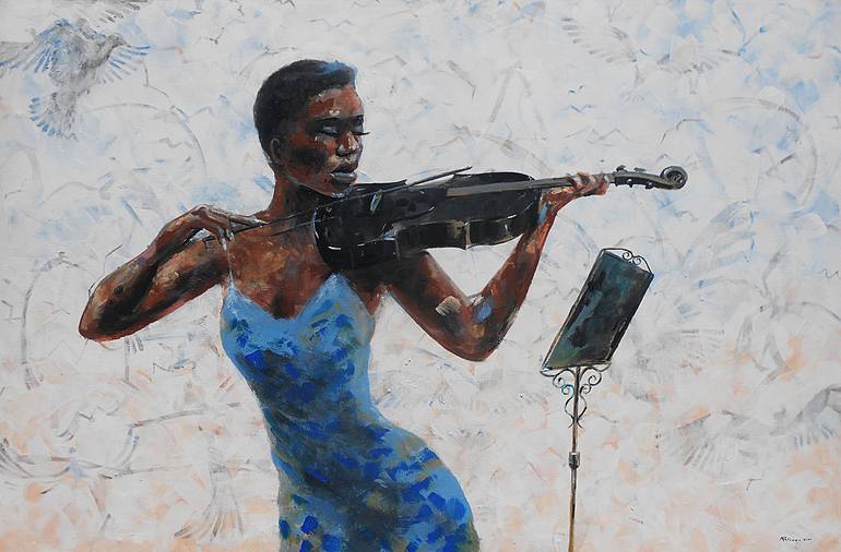 This piece portrays the beauty of music, every brush stroke, the tone was intended to express a sweet melody