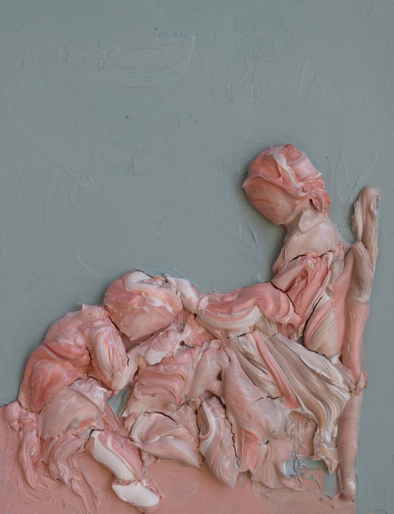It is used a blend of pastel-colored oils in a transition from two-dimensional painting to more sculptural forms. The color itself becomes a sculptural element that highlights the plasticity and imprinting of matter and touch. In a way, It is a homage to the ancient Greek artists who carved history ...