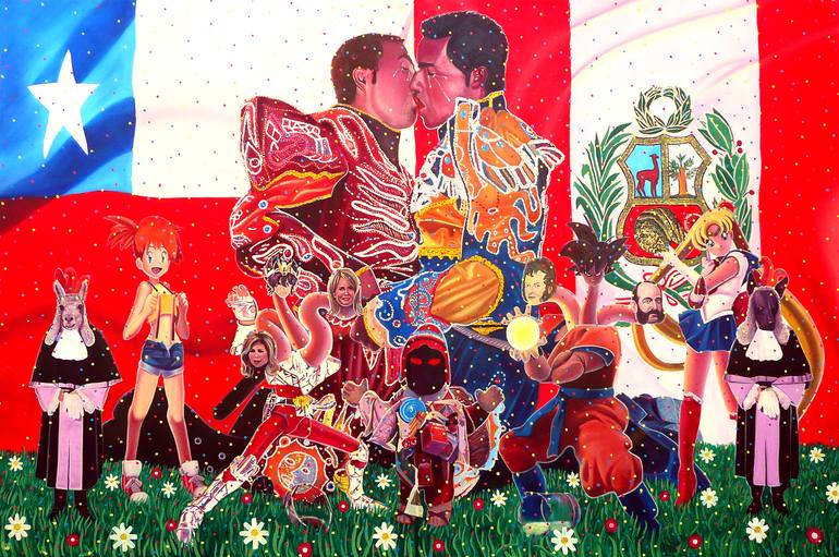 The history of Peru and Chile was marked by the war of the Pacific. Currently there are some cultural conflicts between both nations. My painting tries to create a satire about the war based on the folkloric tradition of both peoples. The realistic painting is made up of elements of popular culture ...