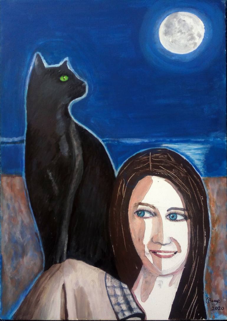 This piece is one of a body of work depicting women. The piece is about the relationship between the woman, the cat and the moon.