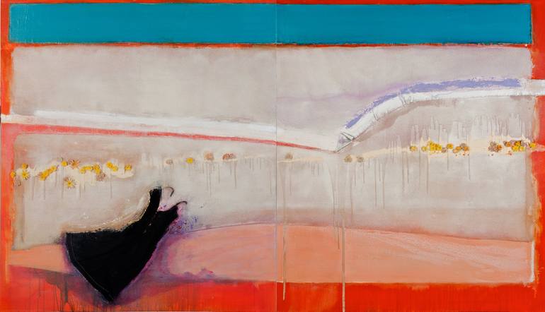 Series "The possibility of an island" Diptic acrylic, sand, dress, artificial flowers on canvas