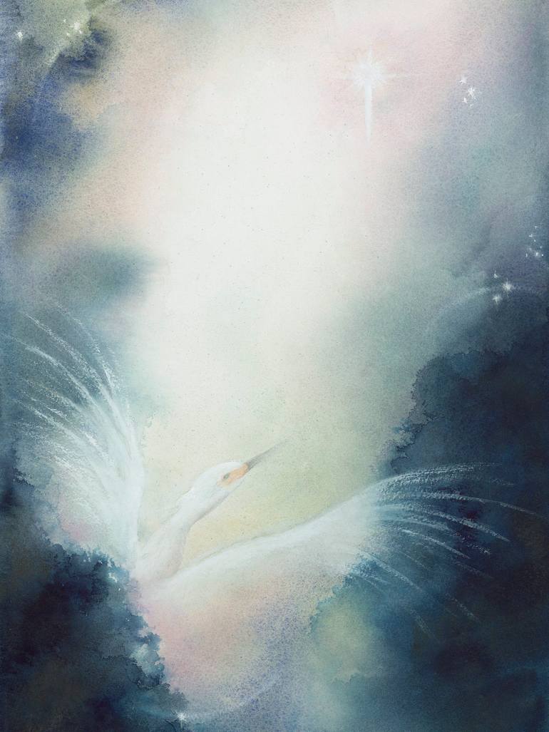 This painting is my response to a line of poetry from Rumi - “Then comes a moment of feeling the wings you’ve grown, lifting”.