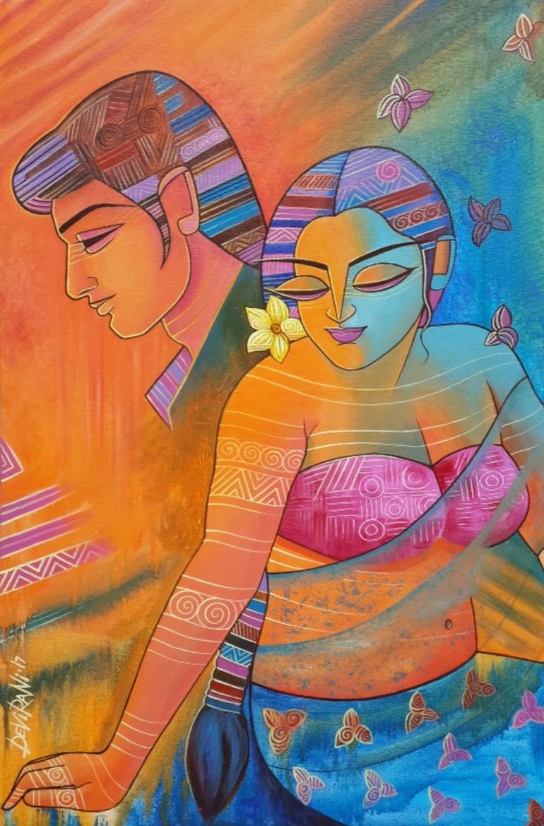 Devi Rani Dasgupta is a young self taught surrealistic painter who tries to connect the known to the unknown through the association of forms which is the best example of structure and balance. Devi Rani Dasgupta was born in 22nd Oct. 1983 in Motihari, a small town situated in northern part of Bihar near Nepal border. At that time in Motihari there was a lack of good school, colleges and basic infrastructural amenities. She belonged to a joint family living with around 20 to 25 family members all around. Her grandfather and uncles were the renowned Doctors in Motihari. Her father was an Engineer. Her family is very rich in culture and heritage. All the members have the artistic sense of mind. She was multi talented but was mainly fond of singing and painting. In her daily life when all her brothers and sisters used to play around, she enjoyed drawing on the huge verandah with a chalk at the tender age of three. She could memorize a song she listened once. Those days proper teachers in the field of art were also not available. Occasionally in school she learned painting. She participated in number of drawing and music competition organized by Rotary club, Sports club, Bihar police etc. and won the first prize. Her maternal grandparents lived in Kolkata. They advised her father to send her to Shantiniketan for higher education in the field of art so as to further enrich her. Though her father recognized her knack but was unwilling to send her out at a young age. She got her basic knowledge of drawing and music from her mother and grandmother. Finally her father appointed a teacher for classical music and painting at the age of 11. Besides learning art she pursued her graduation in Zoology (Hons.) fom B.B.A. University. She always liked to work in a silent corner of her room and do her riyaz or paintings. She learned painting from different teachers specialized in different fields but she was highly influenced by the famous folk art of India specially the Madhubani and Pot Painting. She has done a no of madhubani painting and mastered in this art. She lived a few months in interior regions of Uttar Pradesh (Jaunpur, Sikrara) and learned folk art there. She use to visit Kolkata once in a year in her summer vacation and used to collect good books and visit art galleries. She learned pot paintings from different pot artists and spend hours in Milan Mela to see their work and learn the intricacies.